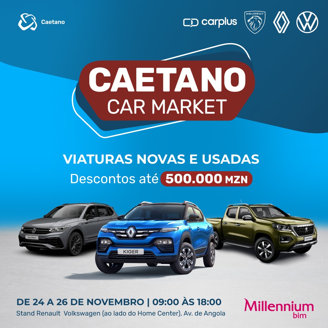 A Caetano Car Market está a oferecer como prenda de Natal descontos imperdíveis, venha conferir de perto neste final de semana de 24 a 26 de Novembro das 9h as 18h no Stand da Renault/Av. de Angola, nr: 2290, Maputo.
